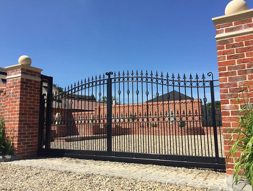 Where high levels of security are required, and there is limited side room for a cantilever gate system, we can supply and install timber and metal hinged swing gates with full automation.