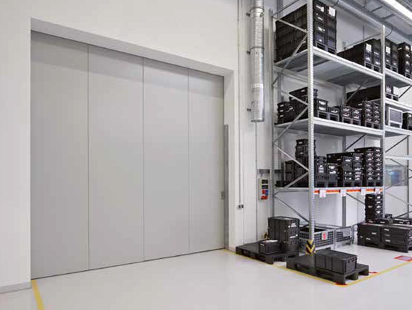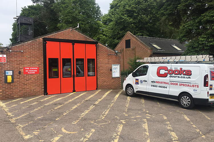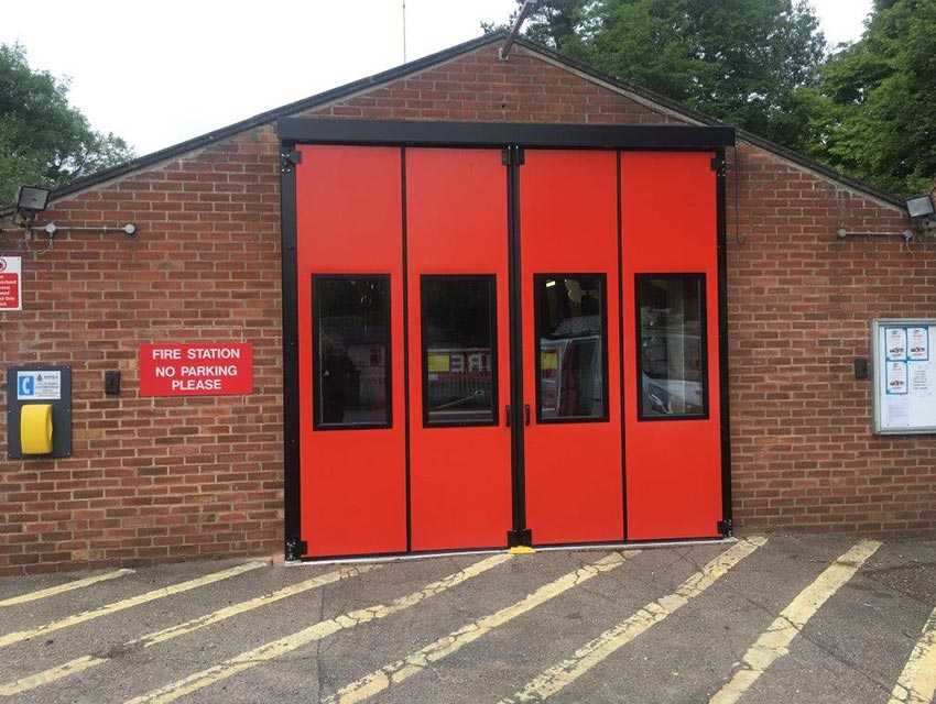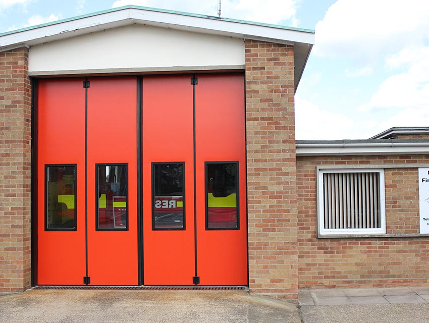 Folding doors are designed to be opened quickly to allow the swift departure of vehicles – this makes them a popular choice for fire and ambulance stations. Single skinned doors are a cost-effective option for unheated buildings. Fully thermally- and acoustically-insulated doors are also available.